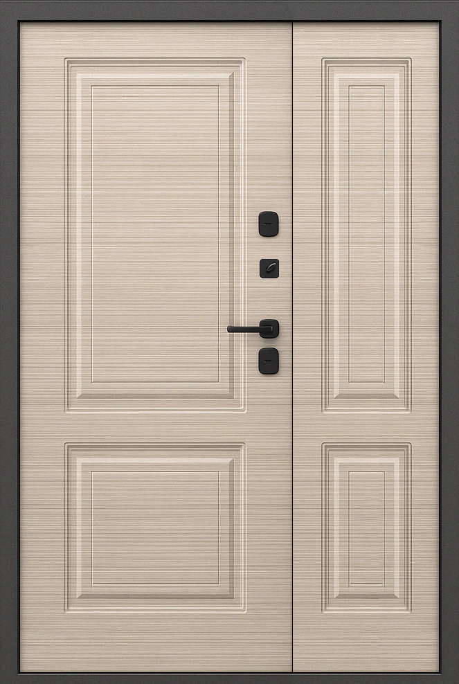 Входная двухстворчатая дверь МДФ гладкий Асфальт и Дуб молочный